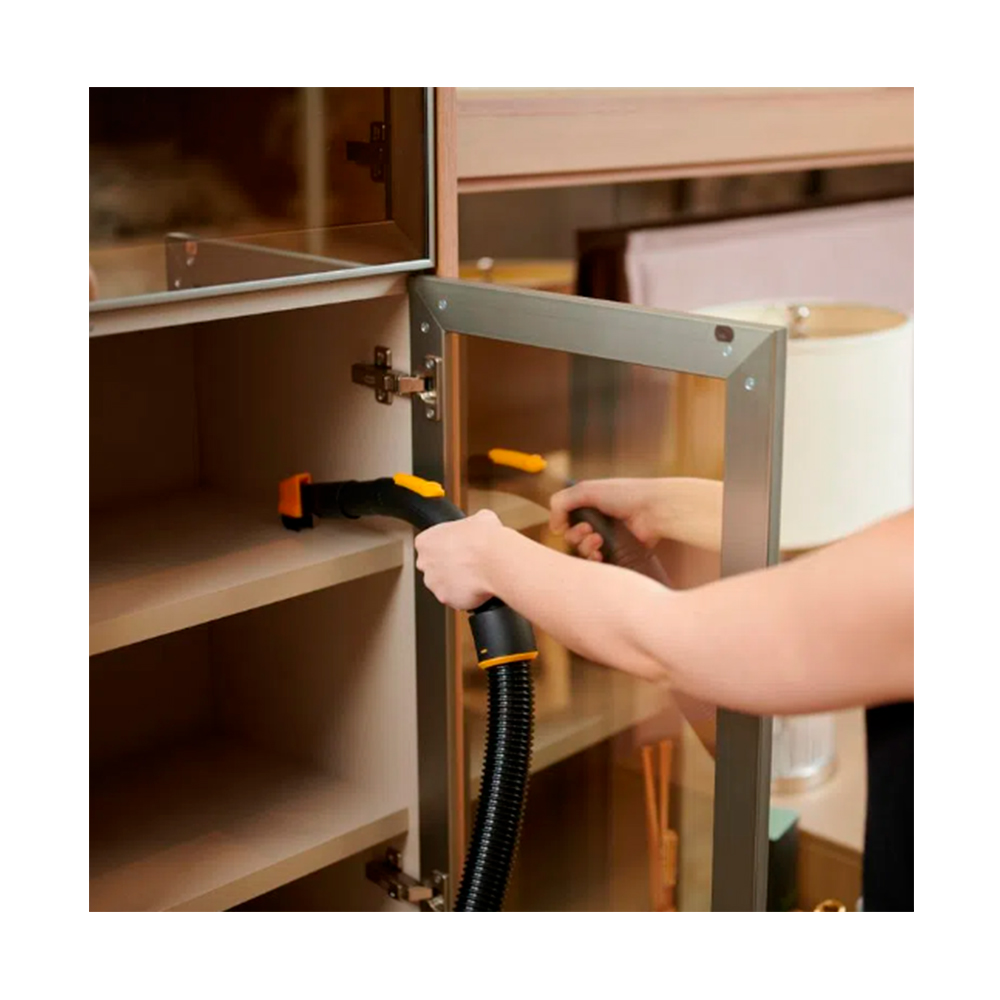 – Acessórios: 1 Bico canto e escova; 1 Mangueira de 1,5 m; 3 extensores de plástico; 1 Bico múltiplo para carpetes e piso frio; 1 Filtro de espuma lavável; 1 Saco para pó de pano lavável.