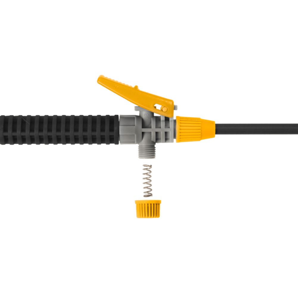 Vem com haste de bombeamento em fibra de vidro com encaixe para a lança, que também possui trava de segurança, evitando o acionamento involuntário. Conta com válvula de segurança para alívio da pressão interna, que é ativada quando o limite é excedido, a pressão de carga de 2,8 atm.